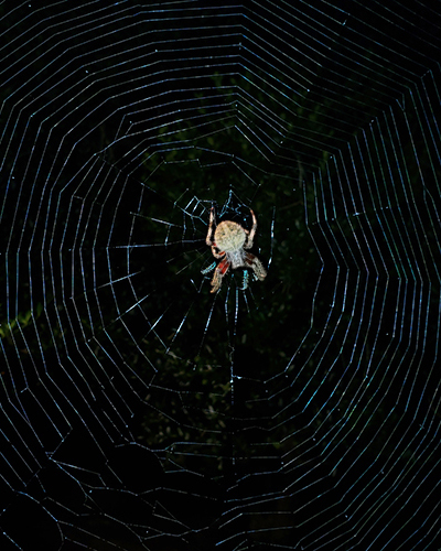 Tomorrow I will see his effort with dew on the strands and view it as art.